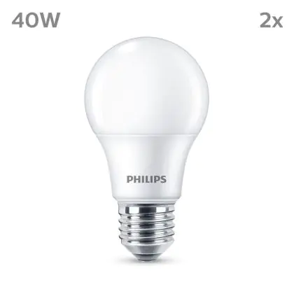 La Confezione Multipack 2x Philips Bulbo LED E27 Pera Ghiaccio 5W 470lm - 827 Bianco Molto Caldo è la perfetta sostituzione per la tua lampada convenzionale W con attacco E27 grazie alla sua tecnologia LED. Passare a LED ti offrirà tanti vantaggi!