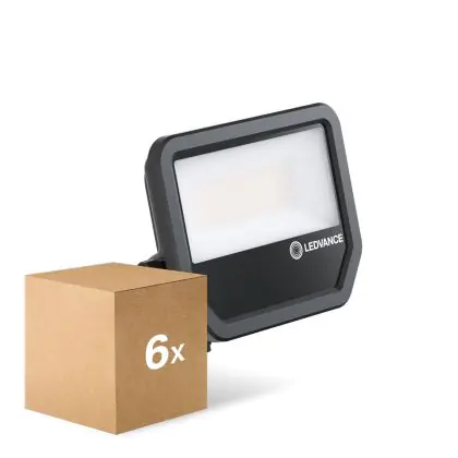 Confezione Multipack 6x Ledvance Proiettore LED Aluminium Nero 41W 5500lm 100D - 830 Luce Calda - | IP66 - Simmetrico
