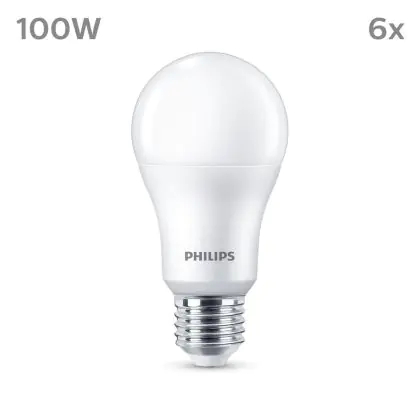 La Confezione Multipack 6x Philips Bulbo LED E27 Pera Ghiaccio 13W 1521lm - 840 Bianco Freddo è la perfetta sostituzione per la tua lampada convenzionale W con attacco E27 grazie alla sua tecnologia LED. Passare a LED ti offrirà tanti vantaggi!