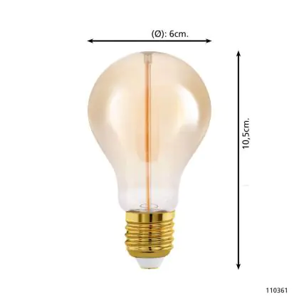 Descrizione Eglo LED Pera E27 Filamento Ambra 2W 100lm - 818 Bianco Molto Caldo | Dimmerabile - Sostitutiva 15W