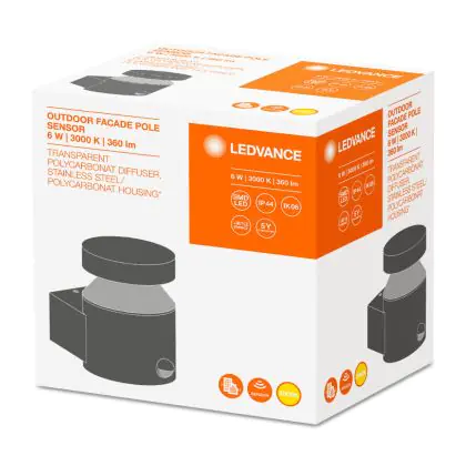 Descrizione Lámpara LED Ledvance Outdoor Facade polo 6W 3000K | con Sensor 360 Lumen LED Integrado