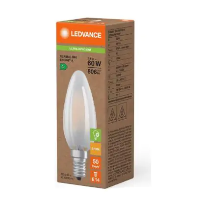 La lampada Ledvance LED Classic E14 Candela Filamento Ghiaccio 3.8W 806lm - 827 Bianco Molto Caldo | Sostitutiva 60W è il sostituto perfetto per le tue vecchie lampade 60W con attacco a vite piccolo E14 grazie alla sua tecnologia LED. Passare a LED ti offrirà molti vantaggi!
