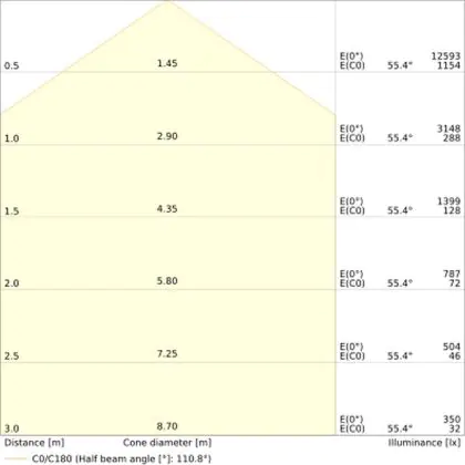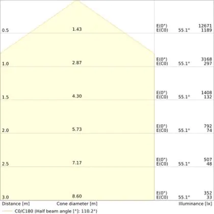 La temperatura di colore di questo apparecchio è . Per le aree in cui la luce naturale è scarsa o assente, consigliamo una temperatura di colore di 6500 Kelvin, ovvero luce bianca come quella del giorno. La luce di 4000 Kelvin (bianco freddo) è una tonalità naturale e si adatta a molte situazioni lavorative e di studio. Una temperatura di colore di 3000 Kelvin (bianco caldo) è perfetta per spazi come un ingresso, un corridoio, una tromba delle scale o una galleria.