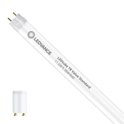 Il Ledvance Tubo LED T8 Value (EM/Mains) Standard Output 11.6W 1400lm - 840 Bianco Freddo | 105cm - Sostitutiva 38W è l’alternativa perfetta per il tubo fluorescente standard 38W nelle plafoniere con un reattore. Con questo tubo LED hai una garanzia di una vita media utile molto lunga e 5 anni Lampadadiretta.it di totale garanzia. .