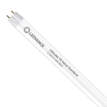 Il Ledvance Tubo LED T8 Value (EM/Mains) Standard Output 6.6W 800lm - 865 Luce del Giorno | 60cm - Sostitutiva 18W è l’alternativa perfetta per il tubo fluorescente standard 18W nelle plafoniere con un reattore. Con questo tubo LED hai una garanzia di una vita media utile molto lunga e 5 anni Lampadadiretta.it di totale garanzia. .