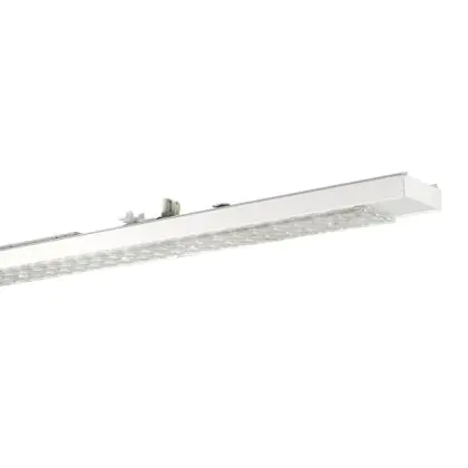 L’apertura luminosa di 90° e l’elevata luminosità (8700 lm) rendono questa linea luminosa adatta per un’illuminazione uniforme in spazi ampi con soffitti alti.