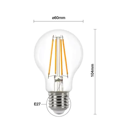 La Noxion Lucent Filamento LED E27 Pera Chiara 11.2W 1521lm - 827 Bianco Molto Caldo | Sostitutiva 100W è la perfetta sostituzione per la tua lampada convenzionale 100W con attacco E27 grazie alla sua tecnologia LED. Passare a LED ti offrirà tanti vantaggi!