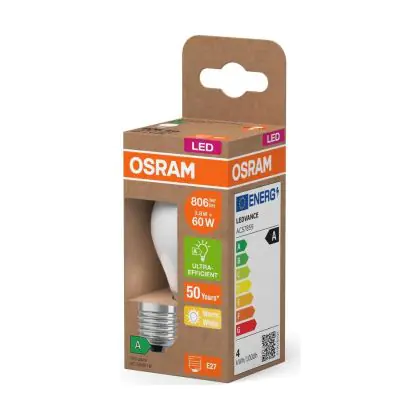 Grazie al suo consumo di soli 3.8W e la sua lunga durata di 50000 ore, puoi risparmiare fino al 60% di energia e con costi di manutenzione abbattuti. Le tradizionali lampadine a incandescenza durano solamente 1000 ore. Installare la lampadina LED è veramente facile, basta svitare la vecchia lampadina E27 ( una volta fredda ) e avvitare successivamente la nuova lampada di Osram con forma Pera nel portalampade. Questo prodotto di Osram è di qualità professionale.