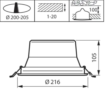 Il foro di un apparecchio differisce dalle dimensioni e si riferisce specificatamente alla dimensione del foro nel soffitto necessario per fissare saldamente la sorgente luminosa durante l'installazione.
