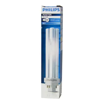 Philips PL-C 26 W 827 4P è una lampada fluorescente compatta a basso contenuto di mercurio efficiente con attacco a 4 pin G24q-3. Questa lampada firmata Philips assicura prestazioni luminose fino a 10.000 ore che equivalgono a 3 anni con un utilizzo giornaliero di 8 ore.