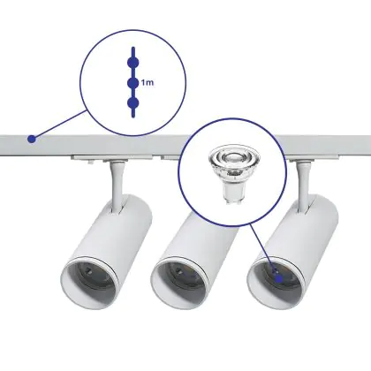 | Nome del fabbricante | Complete Straight 1-meter 1-Phase Track Set White incl. 3x Spot fixture + GU10 2700K 3W Dim – 1 Mete | |